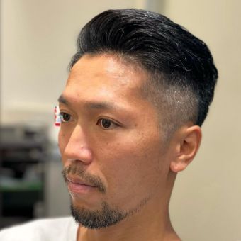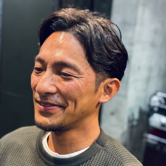もちろんトレンドスタイルも得意としており、渋さのあるバーバースタイルに今の空気感をプラス。ラフにスタイリングしても形になるため、オン・オフどちらにもハマるバランスで仕上げてくれます。